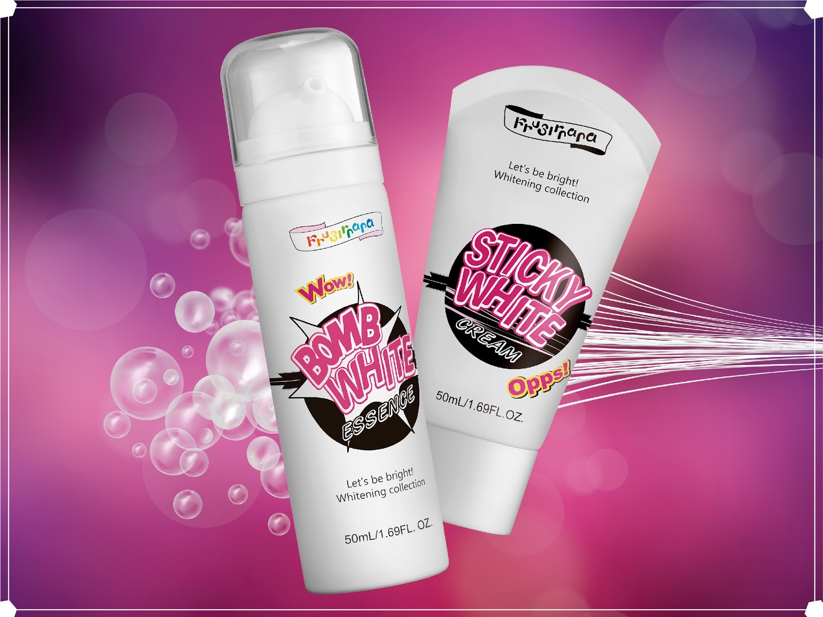 Frusirnana美膚娜娜 秉持有趣、簡單速效的保養精神,推出了全新「一起變白系列」(Let’s Be Bright Whitening Collection),包含了「我已爆炸白精華」和「你可拉絲白乳霜」。全系列除了添加品牌明星成分奇蹟活顏密碼NAG之外,更運用萃取自台灣傳統植萃的亮白成分–白複美萃(Damamit TH)搭配美白成分AA-2G(維他命C醣苷)、傳明酸(Tranexamic Acid),不僅能在源頭抑制黑色素生成、並阻斷黑色素的傳遞與擴張,使角質健康強化、促進肌膚代謝能力,還給肌膚一個清白。