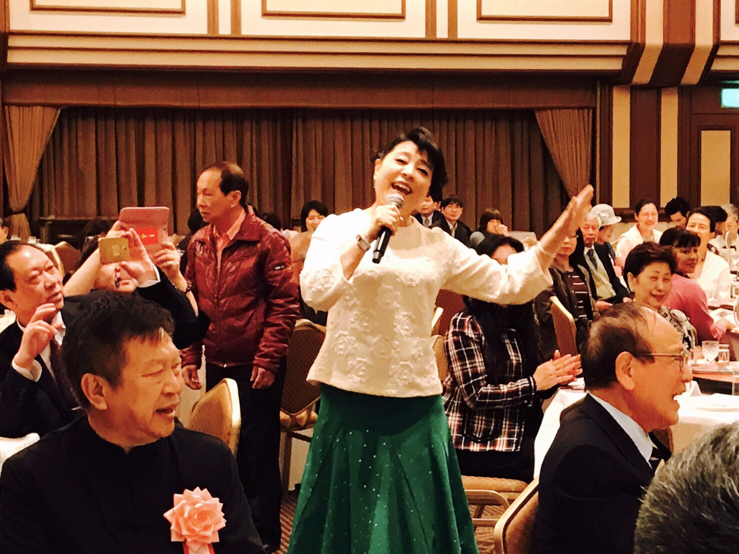 最不同一般的,簡老師為了表示親和,每首歌曲都在舞台下親切地為3百位聽眾展現美聲歌喉及優雅的風範,與台下的觀眾一唱一合齊樂融融,讓台日國民外交更顯親近和氣。最後領唱的經典客家歌曲「客家本色」,簡老師曾專程就教前客委會主委鍾萬梅指導客語發音,連續三個禮拜天天不停練唱,據現場客家朋友說簡老師已經可以把這首「客家本色」的韻味唱得非常貼切與優美。當簡老師與現場所有貴賓和樂及歡欣地齊唱「客家本色」時,已把客家族群的情感及懇親大會的熱情帶到最高潮。