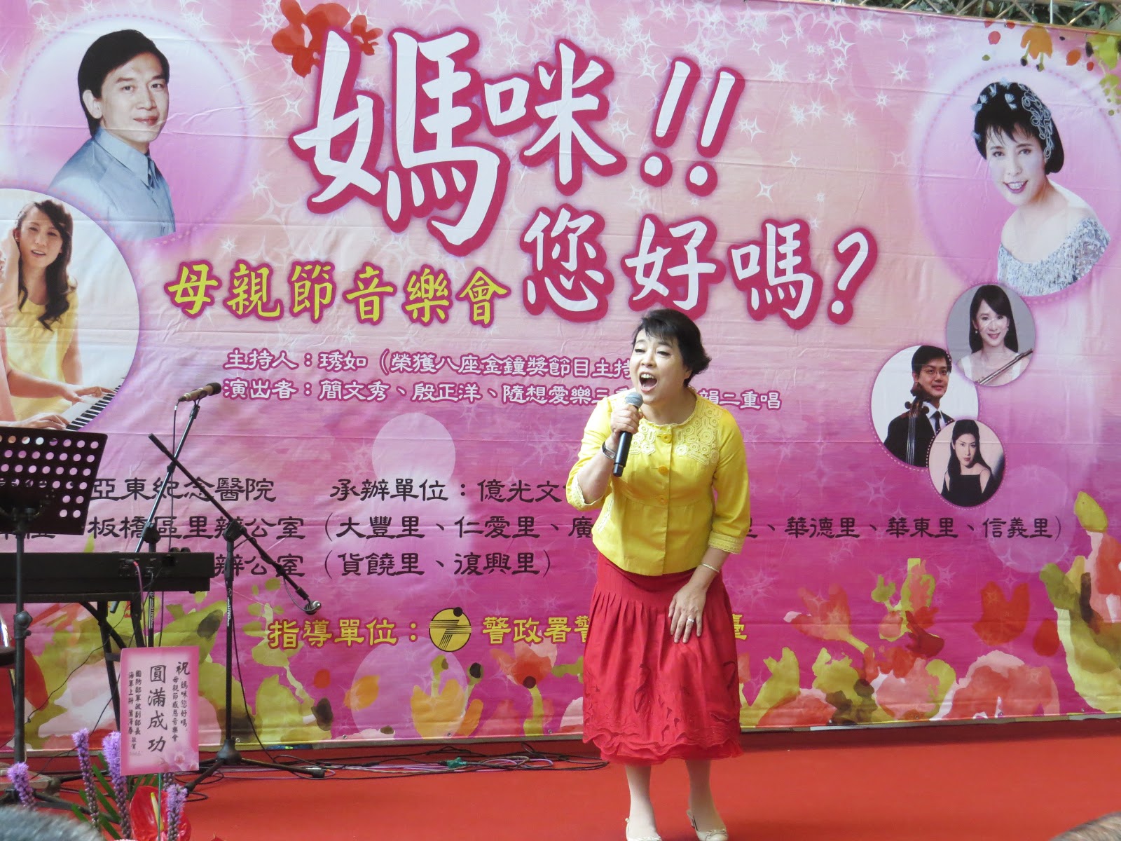 今年亞東醫院以及億光文化基金會在母親節前,為了感謝醫院志工、關心病患及家屬,於5月12日中午12點在亞東醫院新院區一樓大廳,舉辦一場溫馨而美好的免費免門票音樂會「媽咪!您好嗎?」,製作人簡文秀表示這次音樂會與一般音樂會不同的是,我們不只是邀請民眾來聆聽而已,更重要的是要與民眾一起唱歌,讓歌聲滿人間,因為唱歌是維持長壽排名第一的好方法。果然現場透過優美的樂音及歌聲,一開始就吸引醫院內外滿滿的民眾聚集聆賞,讓民眾在今年的母親節有個最特別、最有意思的回憶。