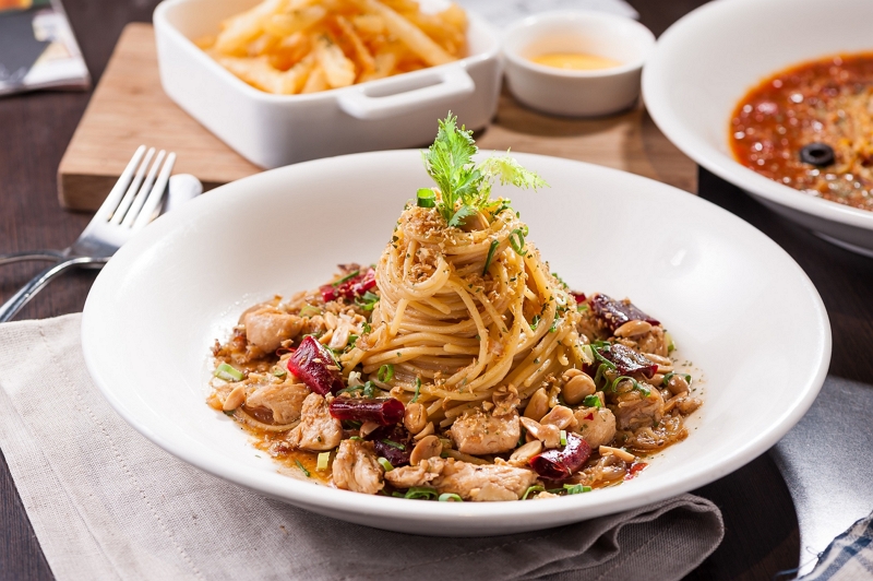 特別推薦『宮保雞丁義大利麵』結合中式傳統名菜搭配義大利麵,帶點微辣並大火快炒,香氣四溢,是洋朵最受消費者喜歡的義大利麵之一。『亞馬遜海鮮義大利麵』為義式料理中的經典,嚴選多種新鮮海鮮,將蒜頭、洋蔥爆香大火快炒,搭配酸甜蕃茄醬汁炒到麵條收汁入味。『焗烤紐西蘭小牛筆管麵』將醃漬入味的紐西蘭小牛片煎至上色,加入筆管麵大火拌炒,上面舖滿滿的起司絲,焗烤上色後顏色繽紛,呈現出氣勢磅礡的視覺饗宴。